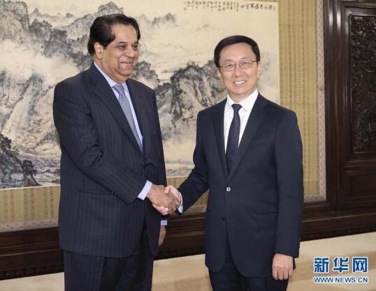 中共中央政治局常委、国务院副总理韩正13日在中南海紫光阁会见新开发银行行长卡马特一行。